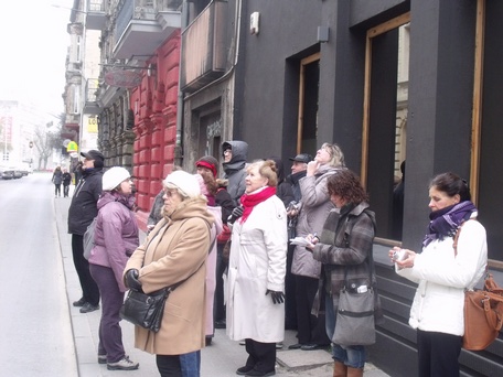 Spacerową ruszyliśmy pod kamienicę Mieczysława Pinkusa i Jakuba Lande, gdzie została przedstawiona sylewetka architekta: Dawida Lande.
